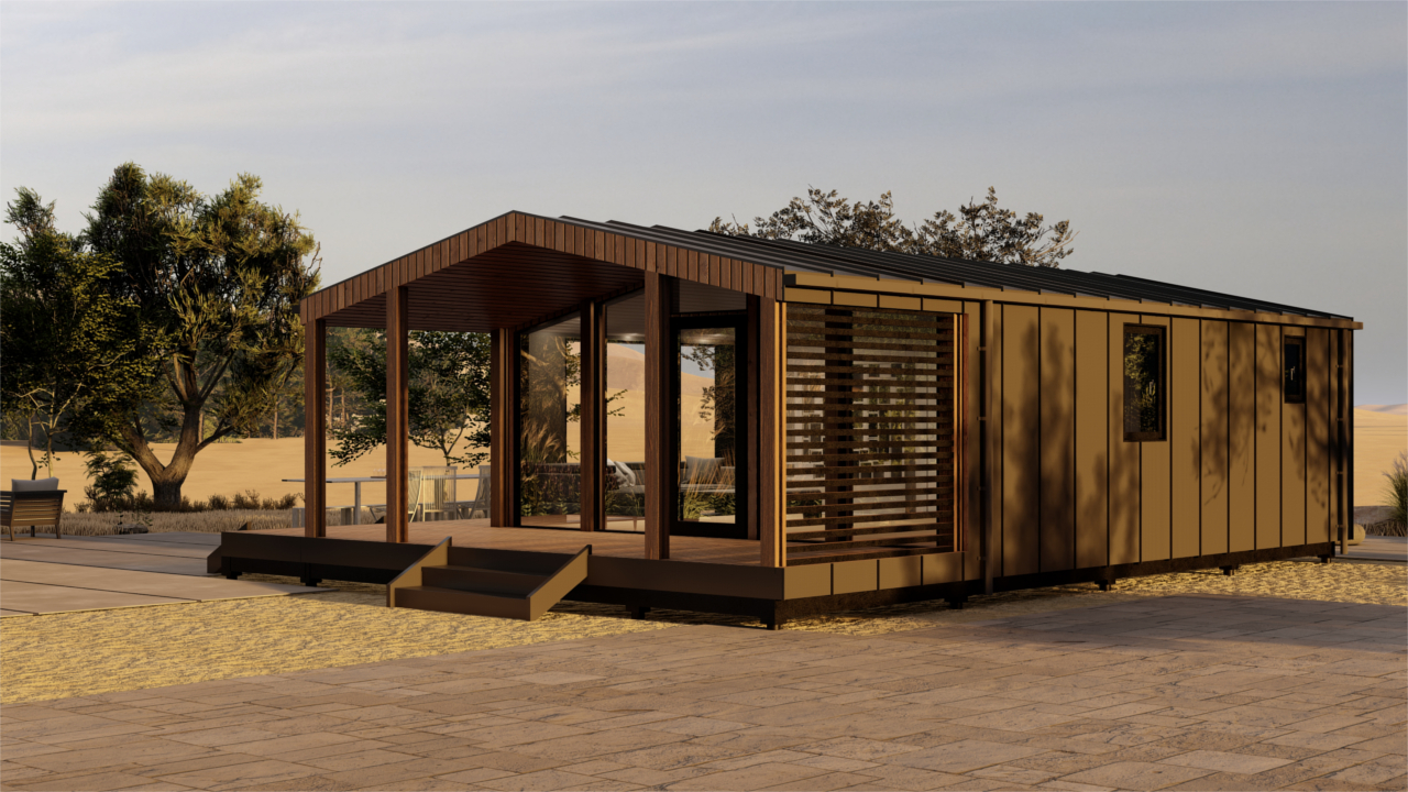 Барн-45 – модульный дом в стиле Барн, предназначенный для круглогодичного проживания, площадью 45 м², включает в себя 2 спальни, кухню-гостиную и санузел. Отличное решение для гостевого дома, загородного глэмпинг-отеля или под баню.(Размер дома по внешнему контуру)